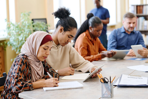 Bij talen leer je beter lezen, schrijven, spreken en luisteren in verschillende talen.Dit helpt je om met andere mensen te communiceren en de wereld beter te begrijpen.
